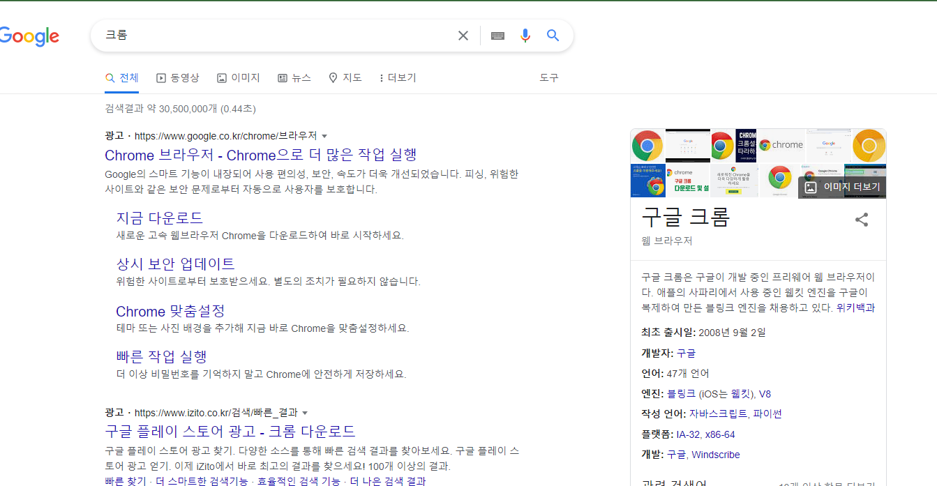 Alt + Enter : 크롬 브라우저에서 새 탭을 열고 구글 검색 수행 앞서 말한 대로 크롬은 주소창에서 검색어를 입력해서 구글 검색을 할 수 있다. 이때 Alt와 함께 Enter 버튼을 누르면 해당 탭이 아닌 새 탭에서 검색 결과를 나타나게 된다.